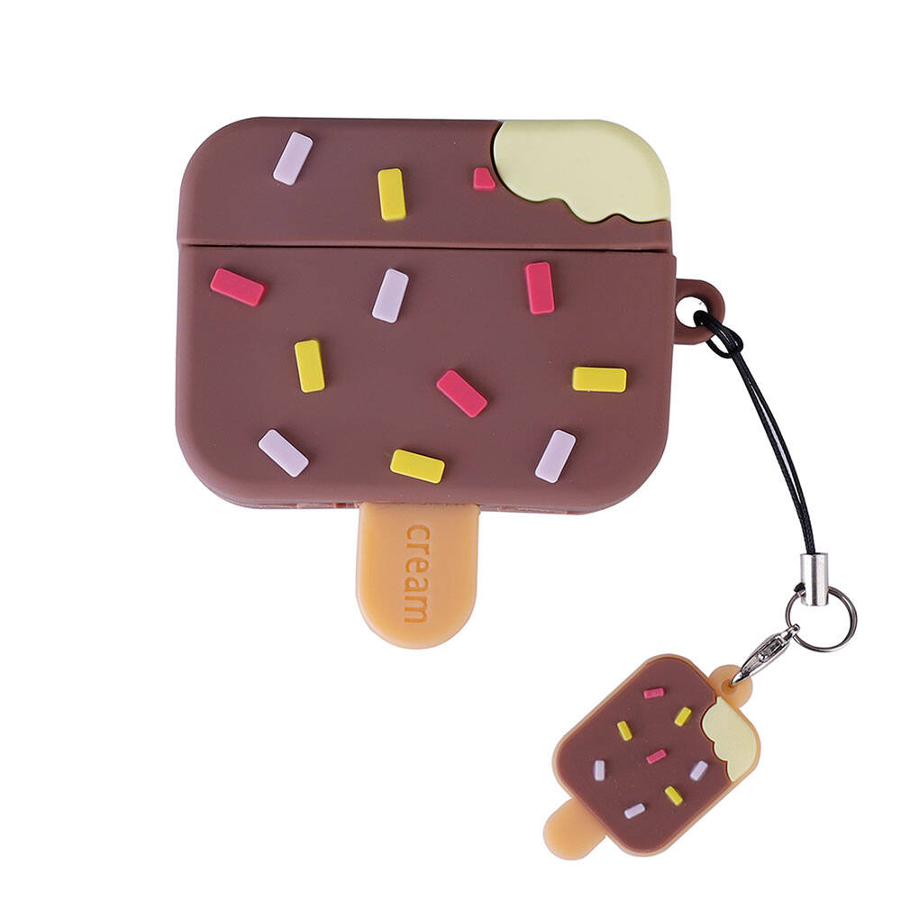 Apple Airpods Pro 2 Zore TPU Kabartma Figürlü İpli Airbag 37 Silikon Kılıf Kahverengi