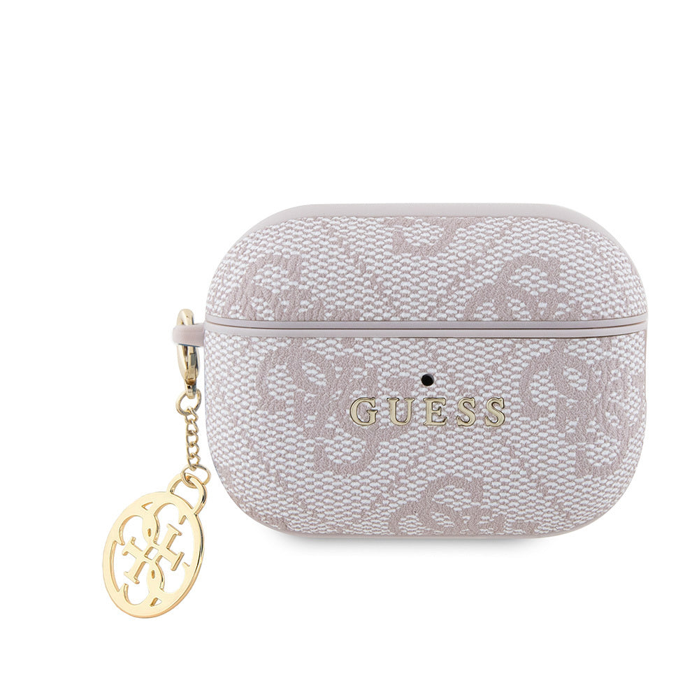 Apple Airpods Pro 2 Kılıf Guess Orjinal Lisanslı 4G Desenli Metal Klasik Logolu 4G Charm PU Deri Kılıf Pembe