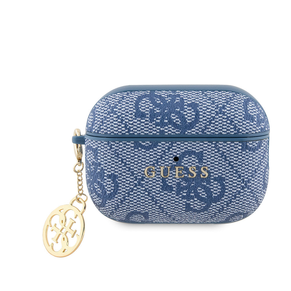 Apple Airpods Pro 2 Kılıf Guess Orjinal Lisanslı 4G Desenli Metal Klasik Logolu 4G Charm PU Deri Kılıf Mavi