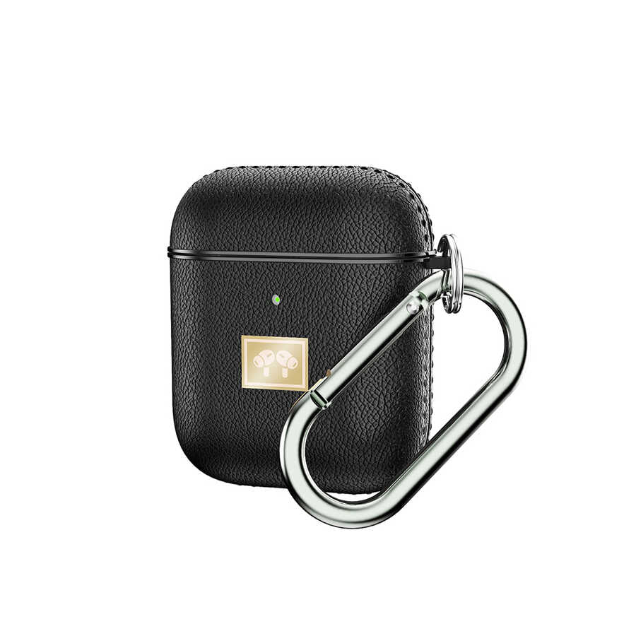 Apple Airpods Kılıf Deri Görünümlü Askı Aparatlı Wlons Kılıf Siyah