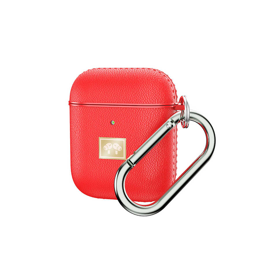 Apple Airpods Kılıf Deri Görünümlü Askı Aparatlı Wlons Kılıf Kırmızı