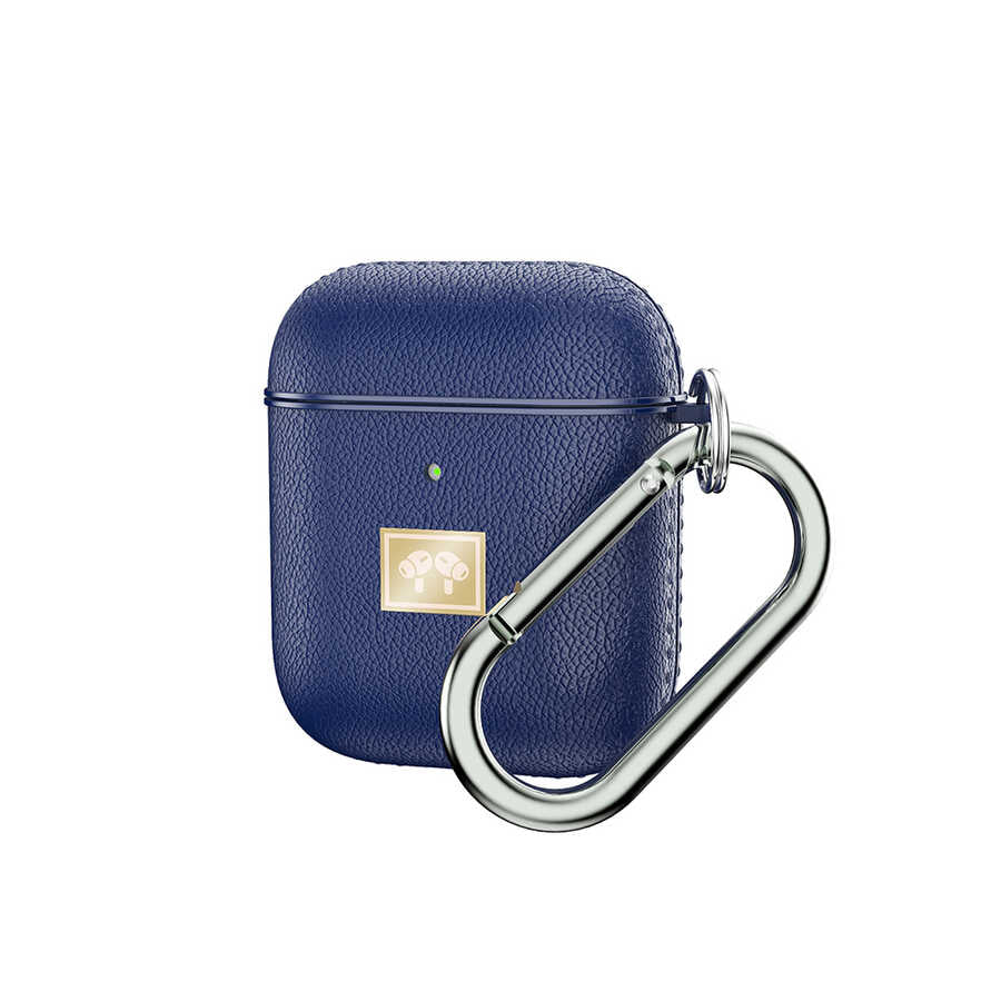 Apple Airpods Kılıf Deri Görünümlü Askı Aparatlı Wlons Kılıf Lacivert
