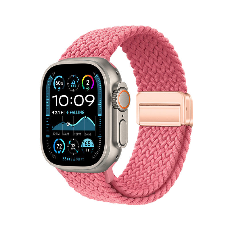 Apple Watch Ultra 49mm Zore KRD-134 Örgü Tasarımlı Hasır Kordon Strap Kayış Pembe