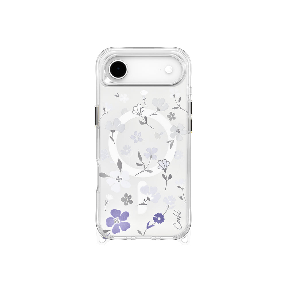 Apple iPhone 17 Air Kılıf M-safe Şarj Özellikli Şeffaf Arka Yüzey Çiçekli Coehl Amara Kapak Lila