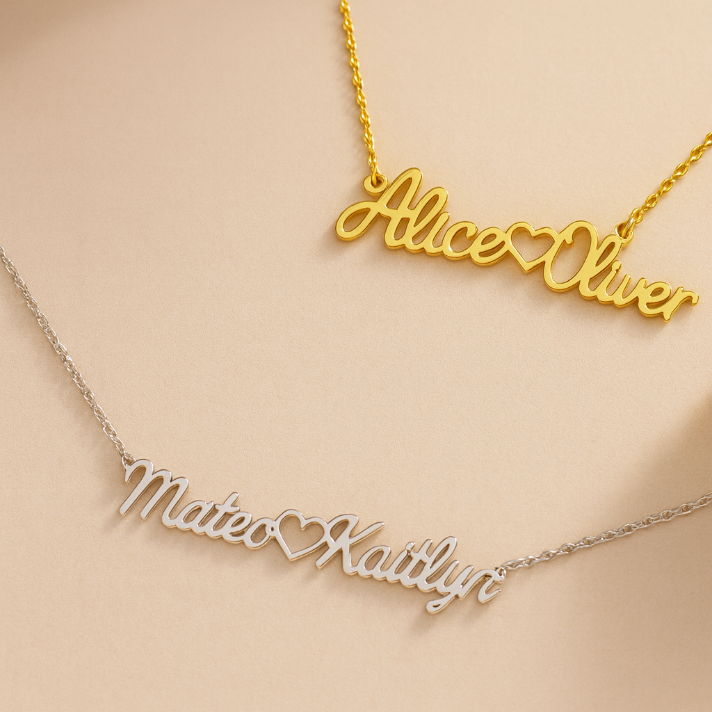 Normal fiyat 915.00TLİndirimli fiyat 915.00TL Normal fiyatBirim fiyat / adetSevginizi ve özel bağınızı zarif bir şekilde yansıtın! Heart Name Necklace, kalp detayıyla isimleri bir araya getirerek kişisel ve anlamlı bir takı deneyimi sunar. Materyal: 925...