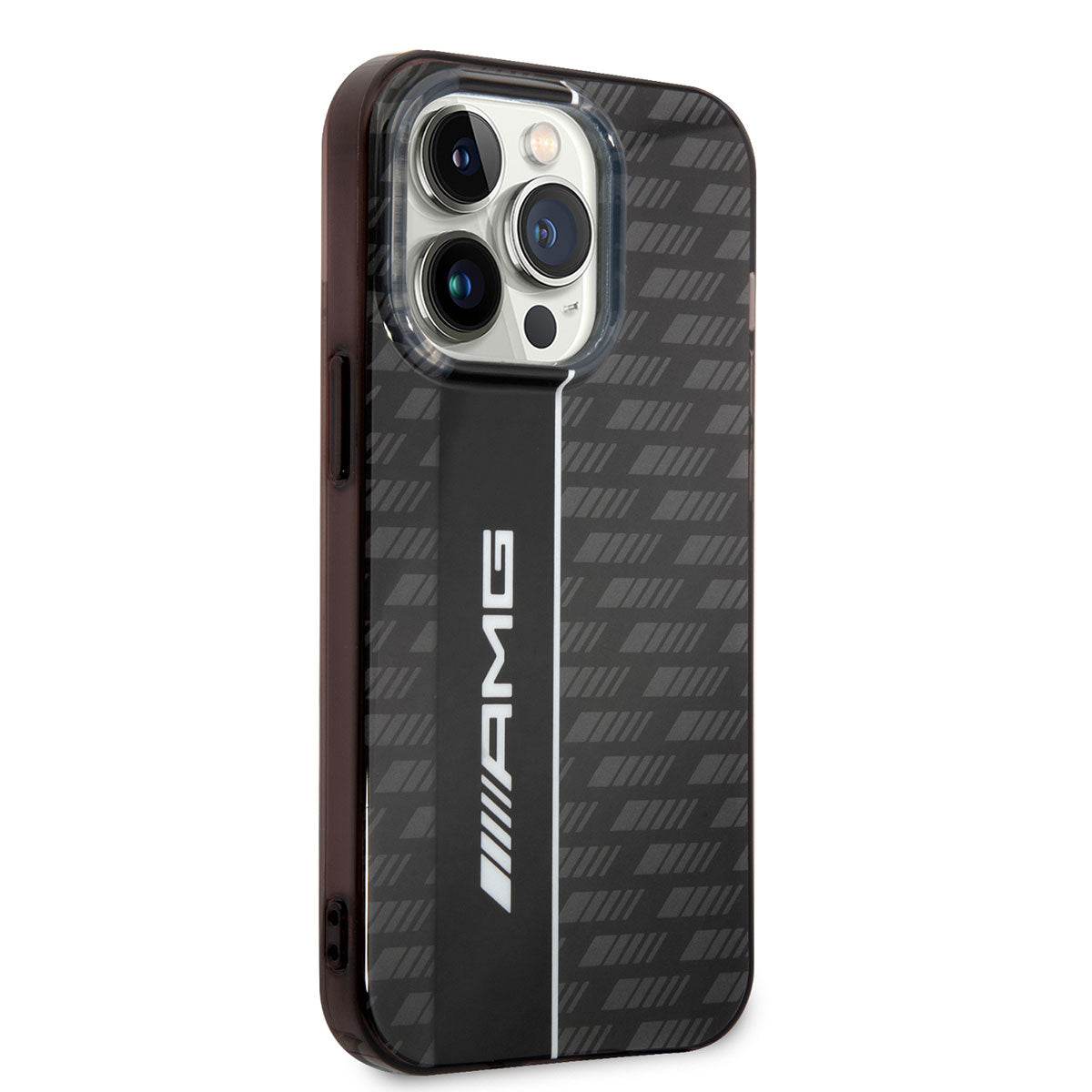 Apple iPhone 15 Pro Kılıf AMG Orjinal Lisanslı Çift Katmanlı Büyük Logolu Dörtgen Şerit Desenli Kapak Siyah