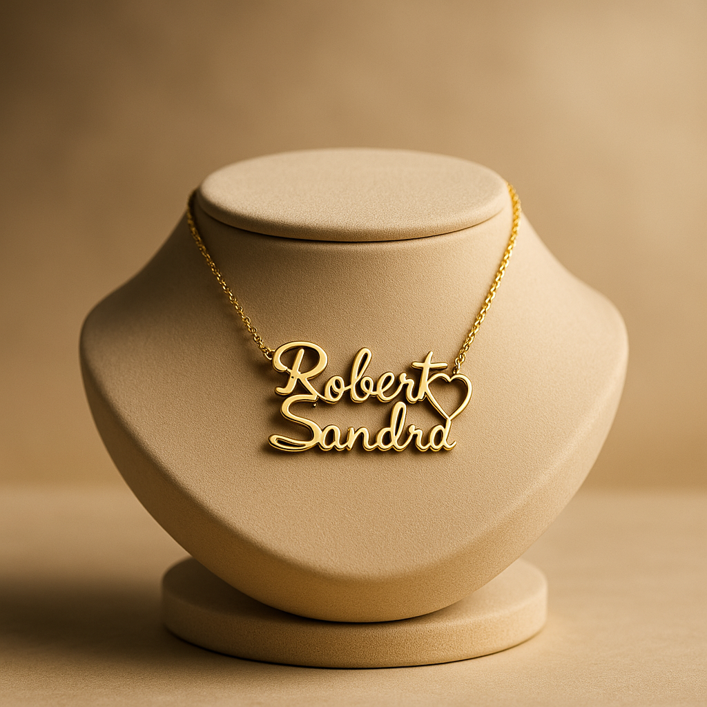 Normal fiyat 999.00TLİndirimli fiyat 999.00TL Normal fiyatBirim fiyat / adetİki ismi zarif bir el yazısı formunda buluşturan bu kişiye özel kolye, kalp detayıyla birlikte sevginin en sade ve en şık hâlini taşır. İnce zincir ve...