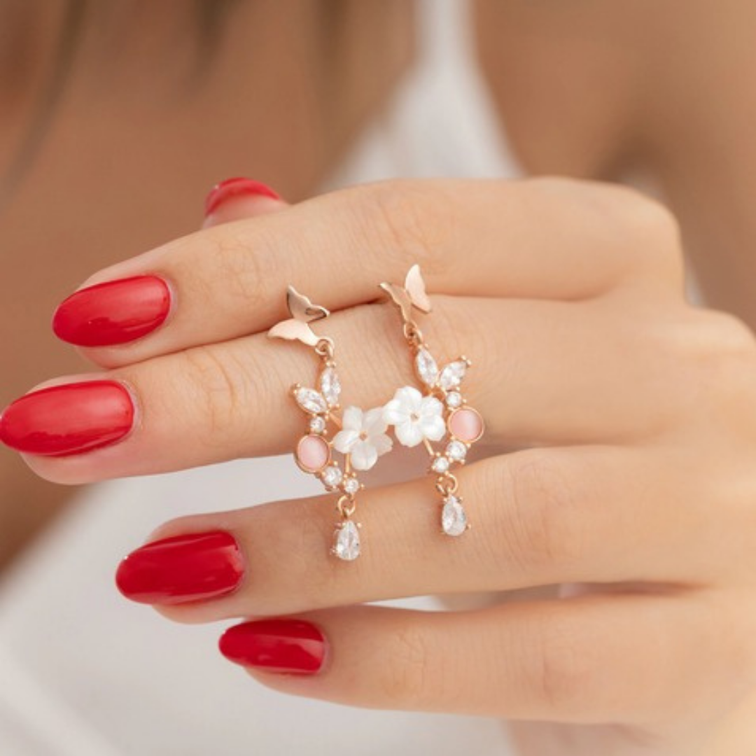 Normal fiyat 1,399.00TLİndirimli fiyat 1,399.00TL Normal fiyatBirim fiyat / adetDoğanın zarafetinden ilham alan bu özel tasarım küpe, gül tonlarının romantik havasını kelebek figürüyle buluşturuyor. İnce işçilikle hazırlanmış detaylar ve zarif taş süslemeler, feminen bir şıklık...