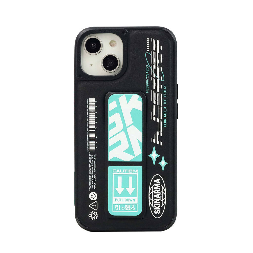 Apple iPhone 15 Pro Max Kılıf M-safe Şarj Özellikli Teknoloji Desenli Standlı Skinarma Helio Kapak Siyah