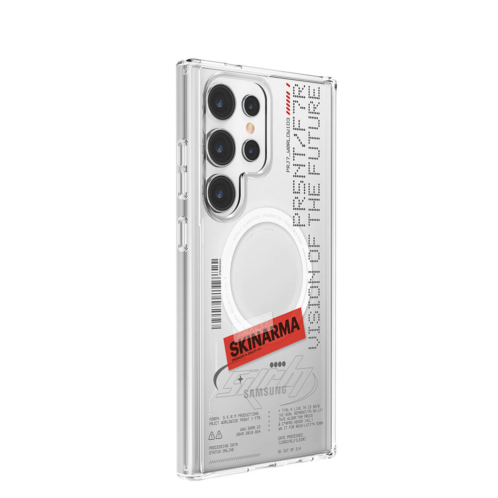 Galaxy S24 Ultra Kılıf SkinArma M-safe Şarj Özellikli Yazı Desenli Airbag Tasarımlı Orion Kapak Renksiz