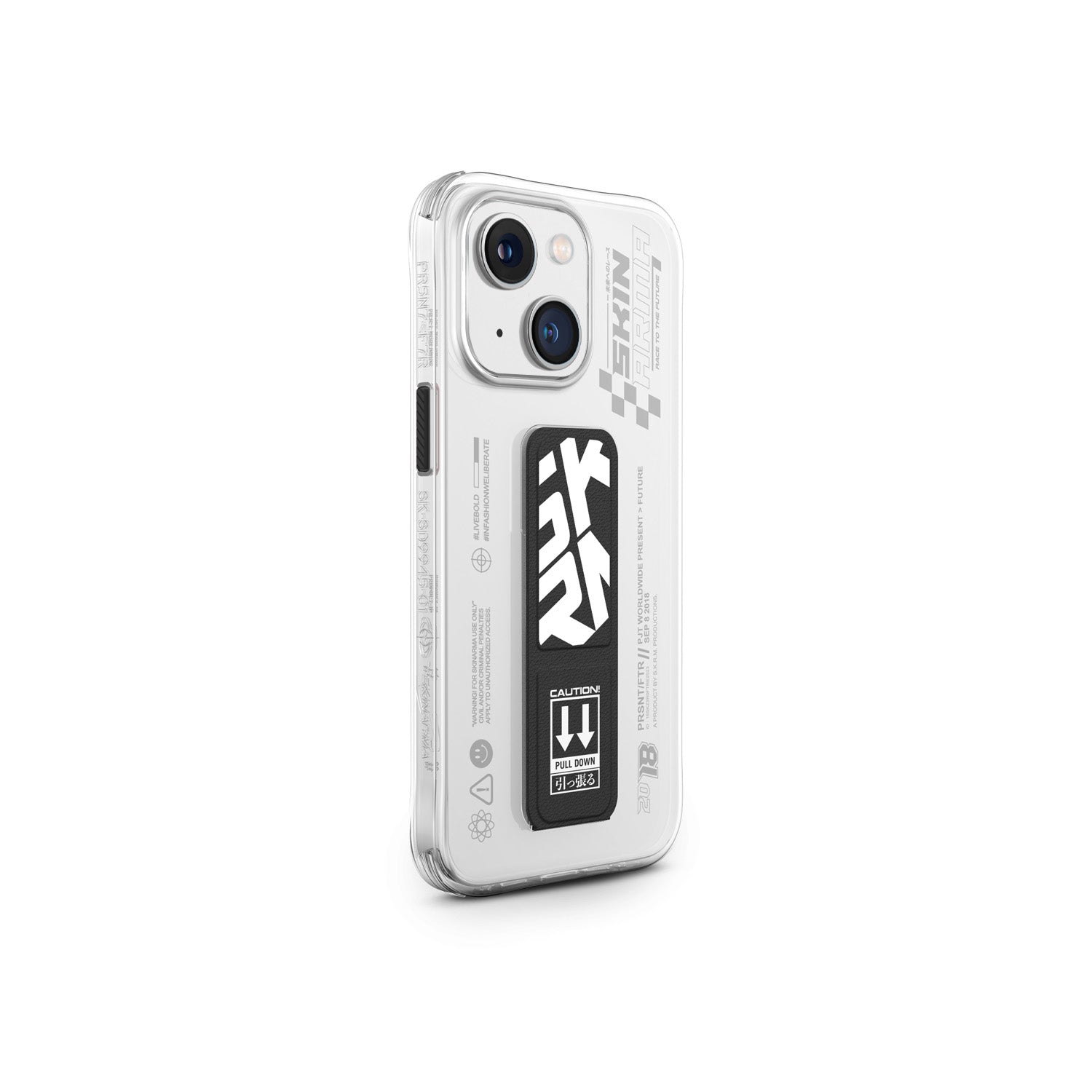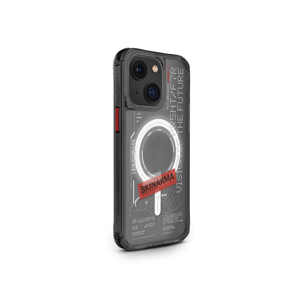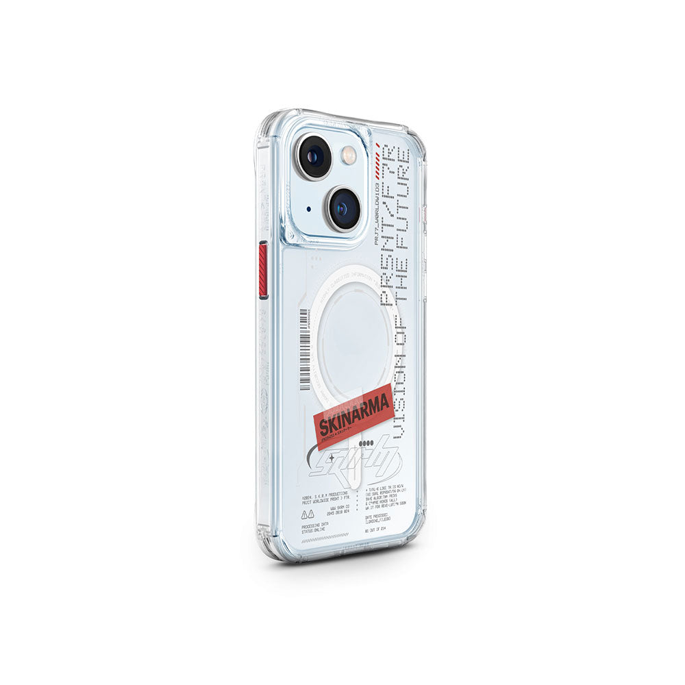 Apple iPhone 15 Kılıf SkinArma M-safe Şarj Özellikli Yazı Desenli Airbag Tasarımlı Orion Kapak Renksiz