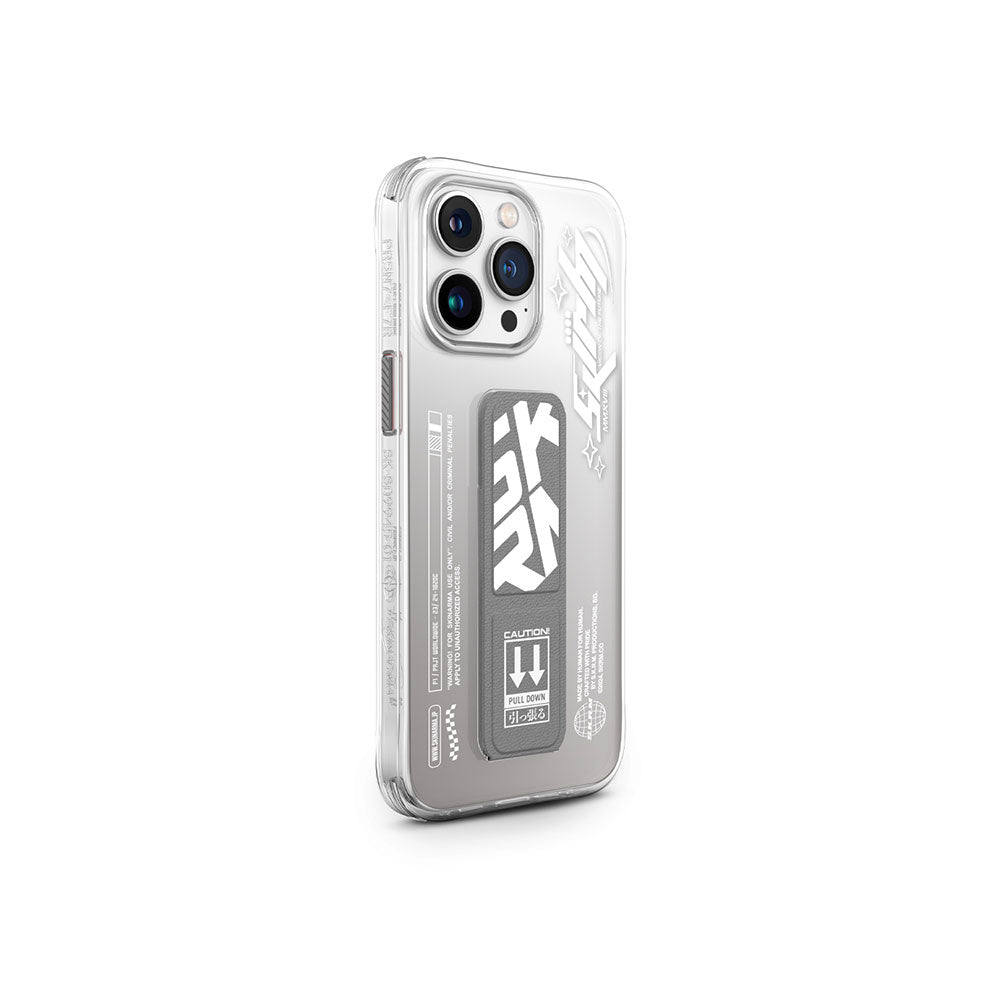 Apple iPhone 15 Pro Kılıf SkinArma Şeffaf Renk Geçişli Airbag Tasarımlı Standlı Cosmo Kapak Gri