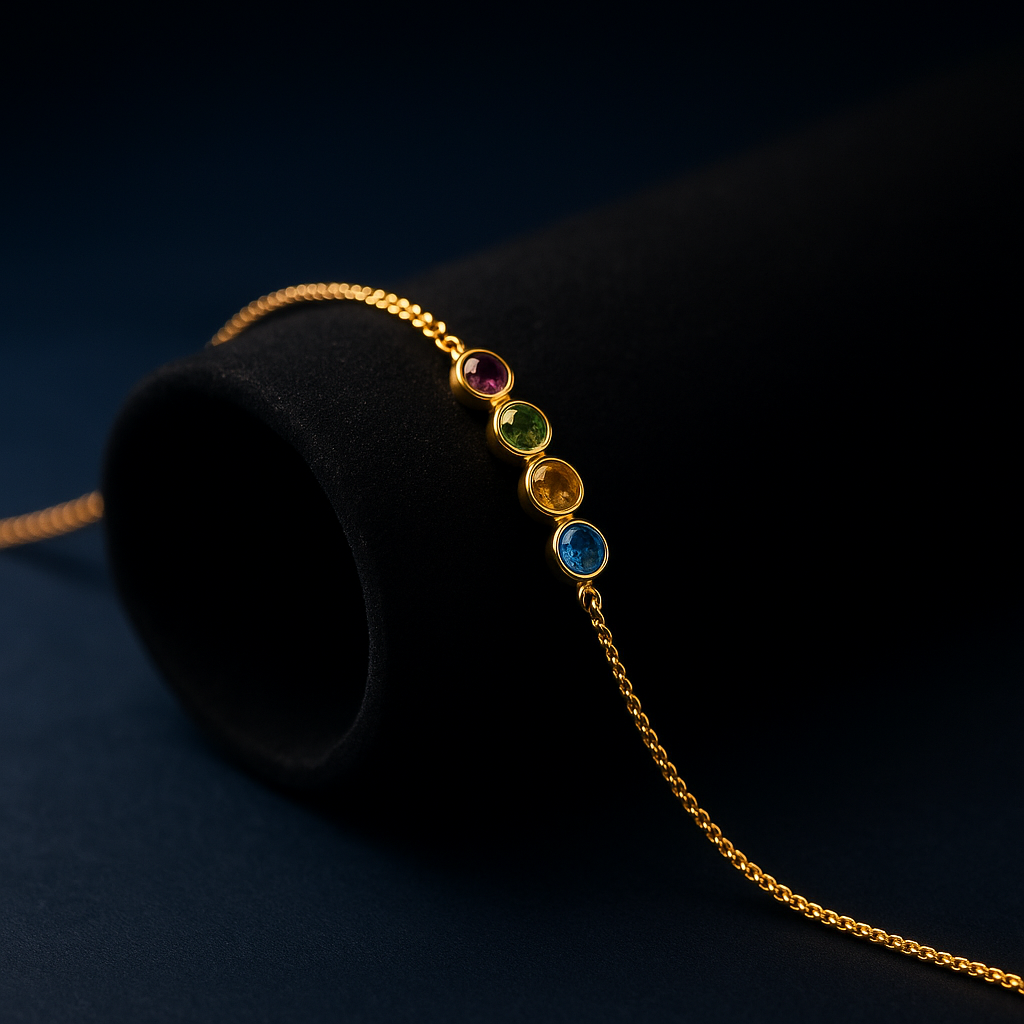 Regular price 799.00TLSale price 799.00TL Regular priceUnit price / perStretching like a thin line around the wrist, this colorful stone bracelet offers an elegant and fresh look with the pastel shimmer of five round stones....