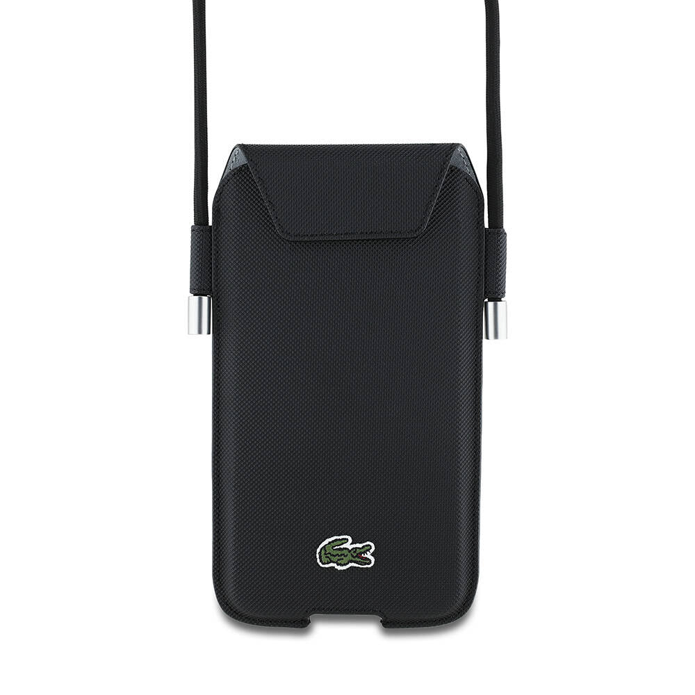 Lacoste Orjinal Lisanslı Çapraz Vücut Askılı PU Pike Desenli 6.7 inç'e Kadar Universal Kılıf