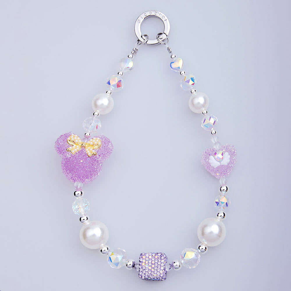 Picocici İnci Taş Tasarımlı Fiyonklu Minnie Mouse Telefon Bilek Askı İpi