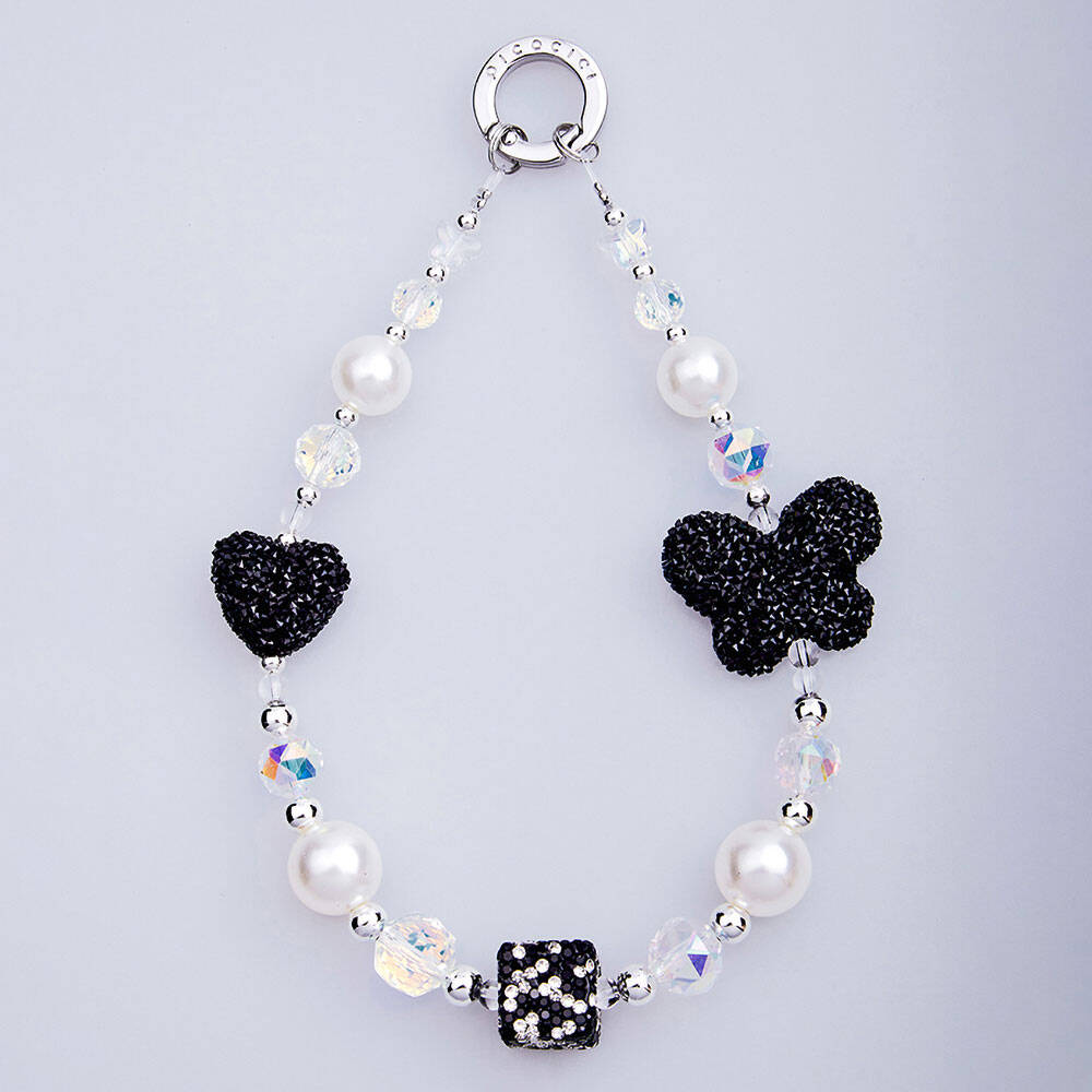 Picocici Siyah Taş Tasarımlı Üç Boyutlu Kelebek Telefon Bilek Askı Zinciri