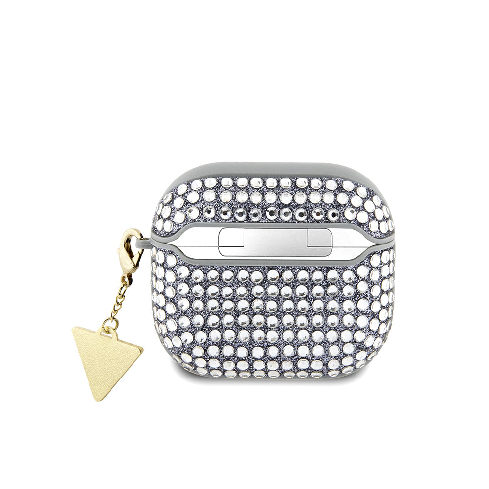 Airpods 4 Case Guess Original Licensed Glitter Stone Coated Triangle Logo Ornament Chain Cover