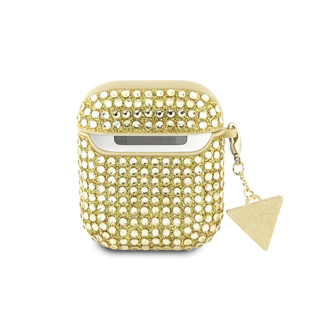 Apple Airpods Case Guess Original Licensed Glitter Stone Coated Triangle Logo Ornament Chain Cover
