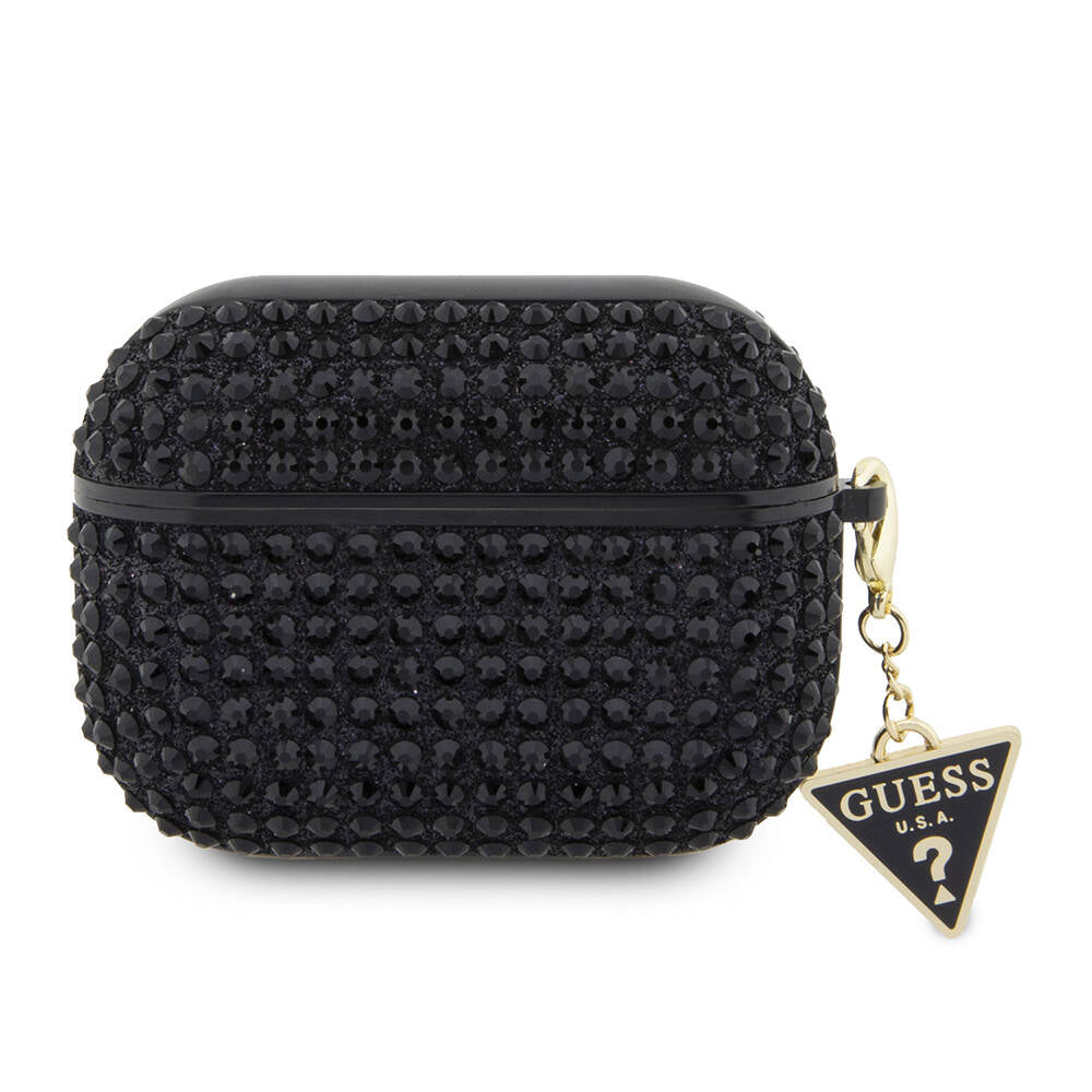 Apple Airpods Pro 2 Case Guess Original Licensed Glitter Stone Coated Triangle Logo Ornament Chain Cover
