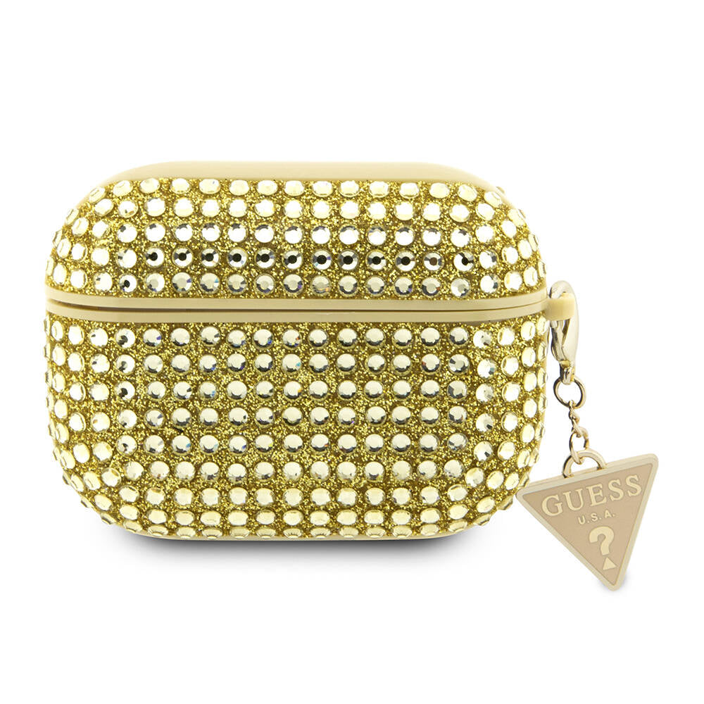 Apple Airpods Pro 2 Case Guess Original Licensed Glitter Stone Coated Triangle Logo Ornament Chain Cover