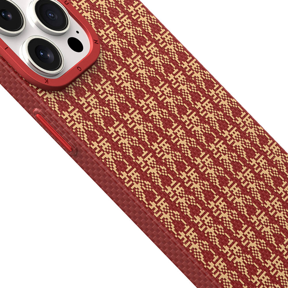 Apple iPhone 14 Pro Max Case M-safe Charging Feature Kevlar 1500D Youngkit Auspicious Loong Series Cover Red