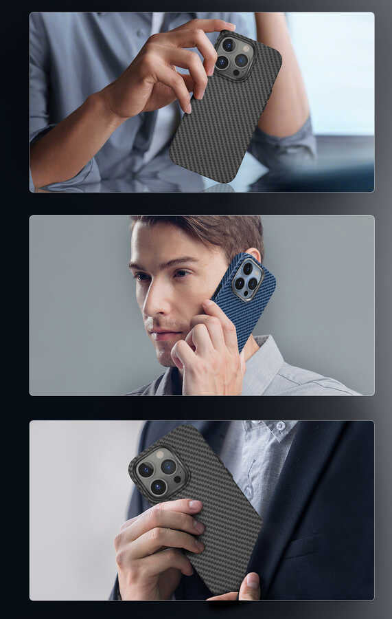 Apple iPhone 14 Pro Max Case Wiwu Carbon Fiber Look M-safe Wireless Charging Featured Cabon Cover Black