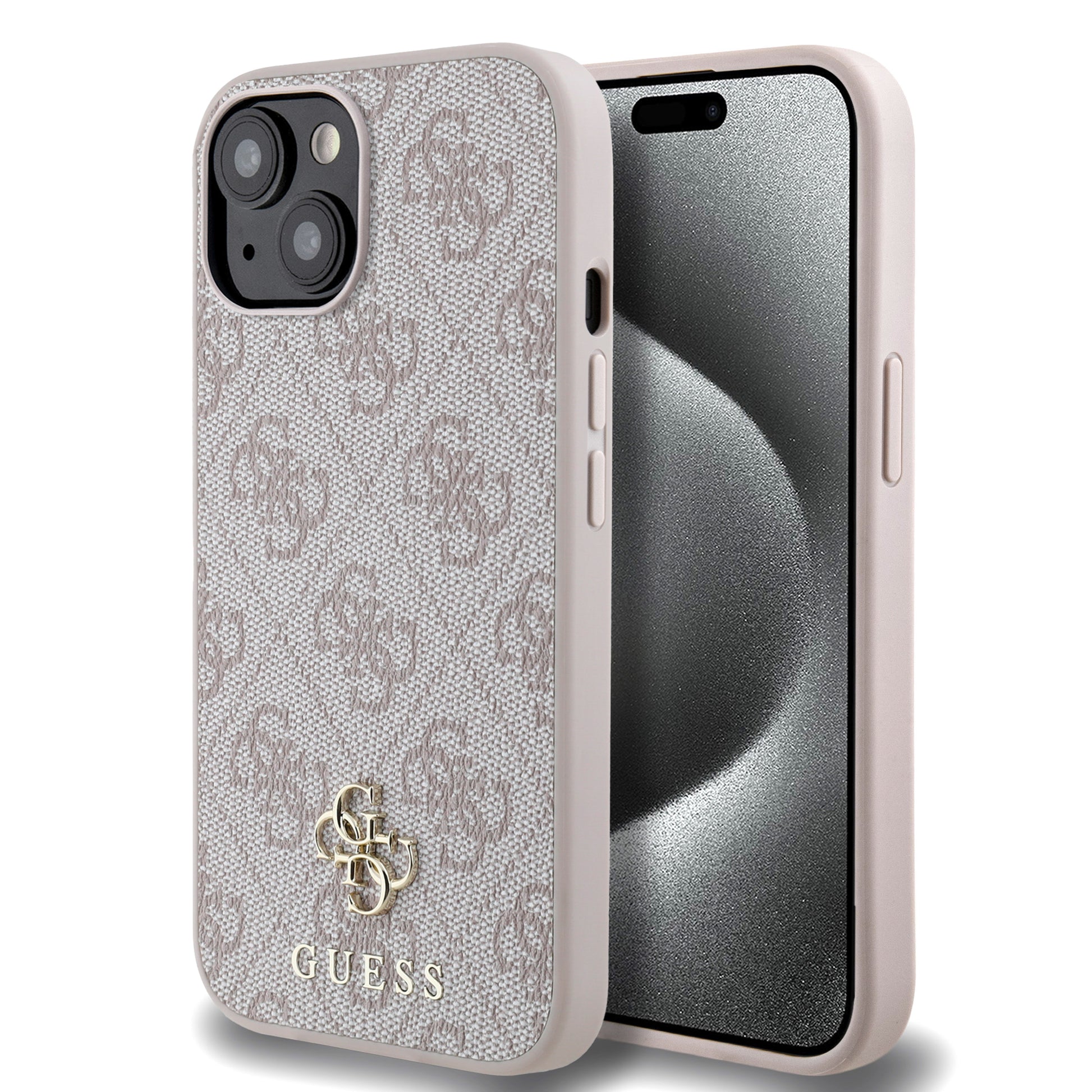 Apple iPhone 15 Case Guess Original Licensed M-safe Charging Feature Small 4G Classic Cover Pink
