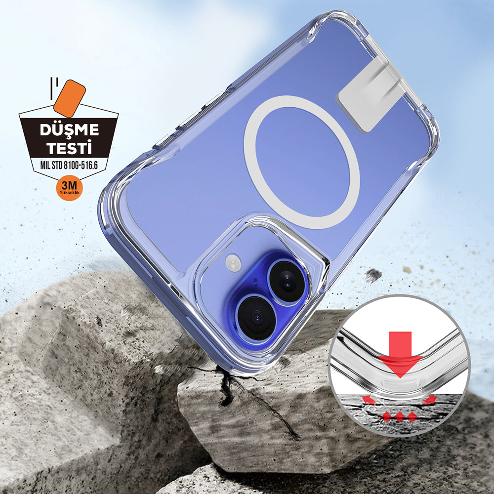 Apple iPhone 16 Case M-safe Charging Feature Zore T-Max Stand Cover Transparent