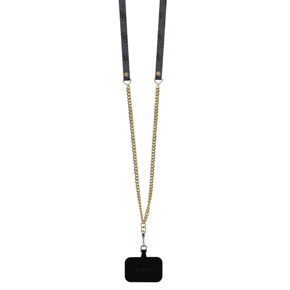 Guess Original Licensed PU Leather Case with Stone Metal Triangle Logo and Crossbody Strap for iPhone 16 Pro 4G Patterned Cover