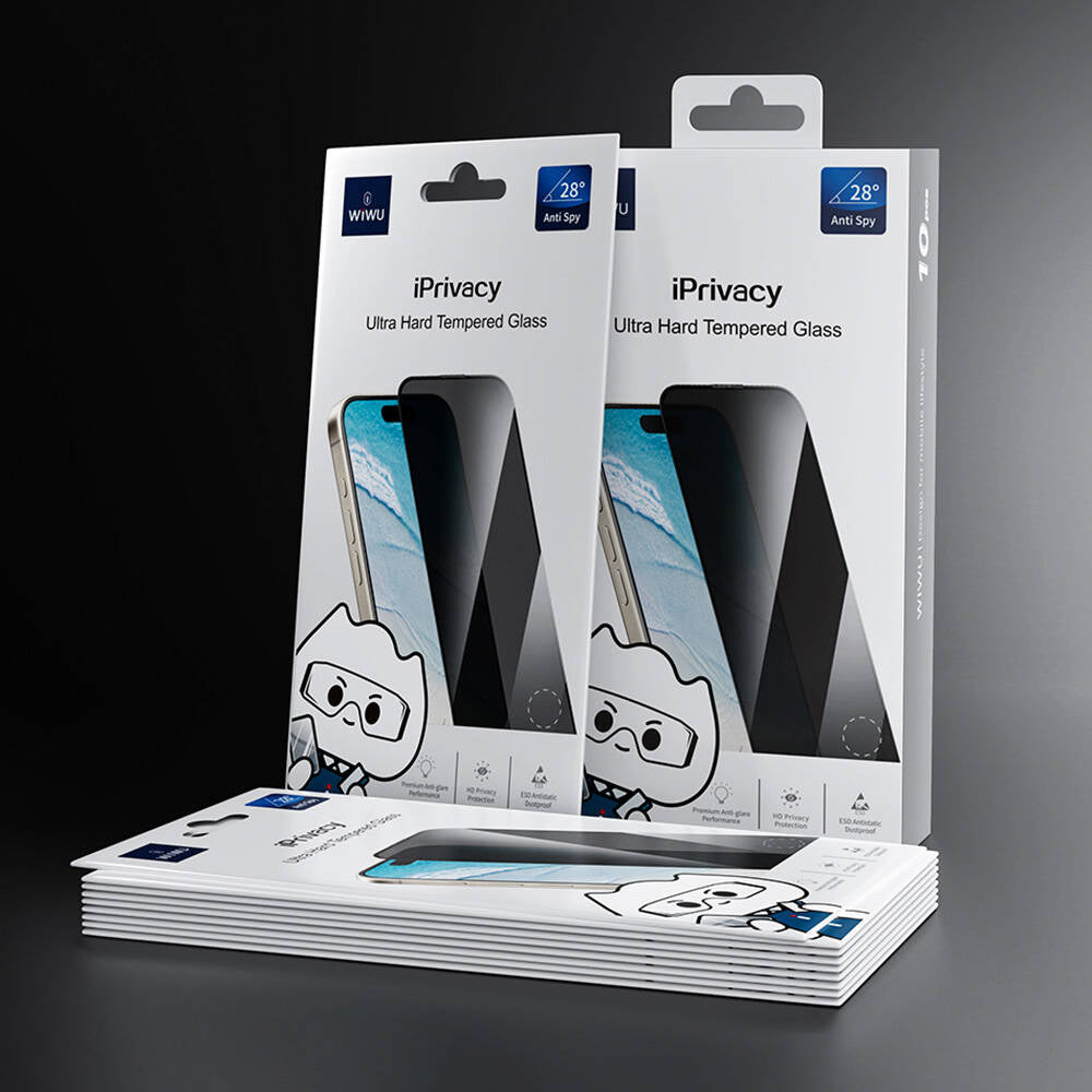 iPhone 16 Pro Max Wiwu GT-015 Multi-Layer Tempered iPrivacy Glass Screen Protector 10-Pack