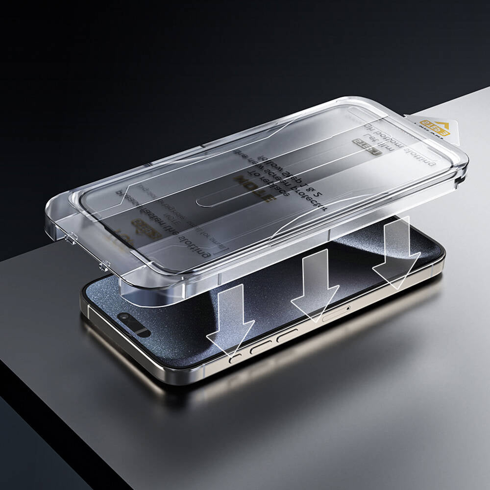 The included easy-to-use application tool helps you apply the screen protector effortlessly and precisely. The dust-repellent coating ensures complete application without leaving bubbles or dust on the screen. Its precise design ensures accurate alignment in a single move, allowing you to easily place your screen protector on your phone without worrying about installation.
