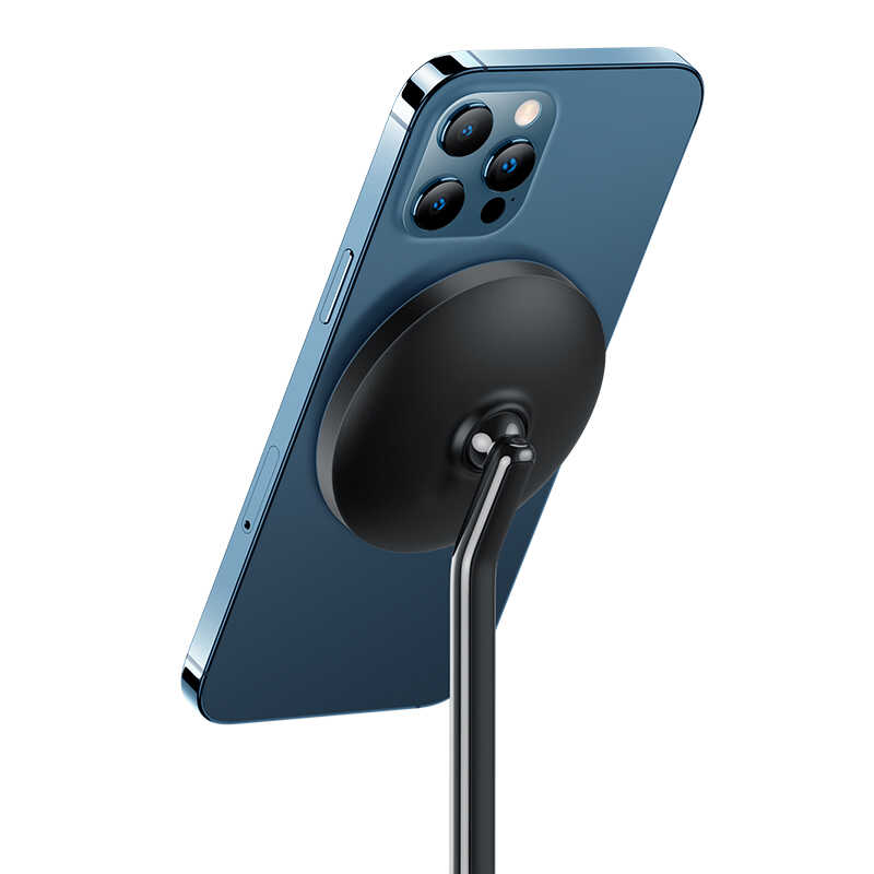 Magnetic stand with wireless charging support, where you can place your mobile phone and use it as a stand.