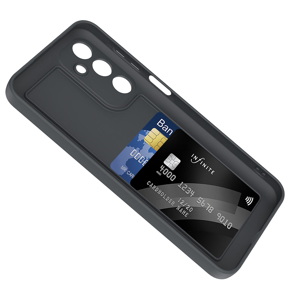 The flexible silicone material grips your device, providing full protection against impacts and scratches. The camera-protective design prevents the lens from scratches and impacts. Whether you're working in the office or sipping coffee at a café, this cover provides both style and security. Simply inserting your card and heading out provides great convenience, especially on busy days.