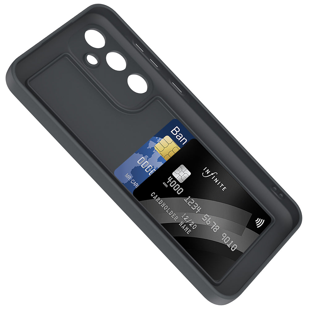 The flexible silicone material grips your device, providing full protection against impacts and scratches. The camera-protective design prevents the lens from scratches and impacts. Whether you're working in the office or sipping coffee at a café, this cover provides both style and security. Simply inserting your card and heading out provides great convenience, especially on busy days.