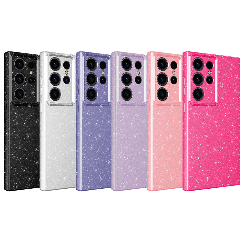 Galaxy S24 Ultra Case Camera Protection Glitter Luxury Zore Cotton Cover Pink Dark
