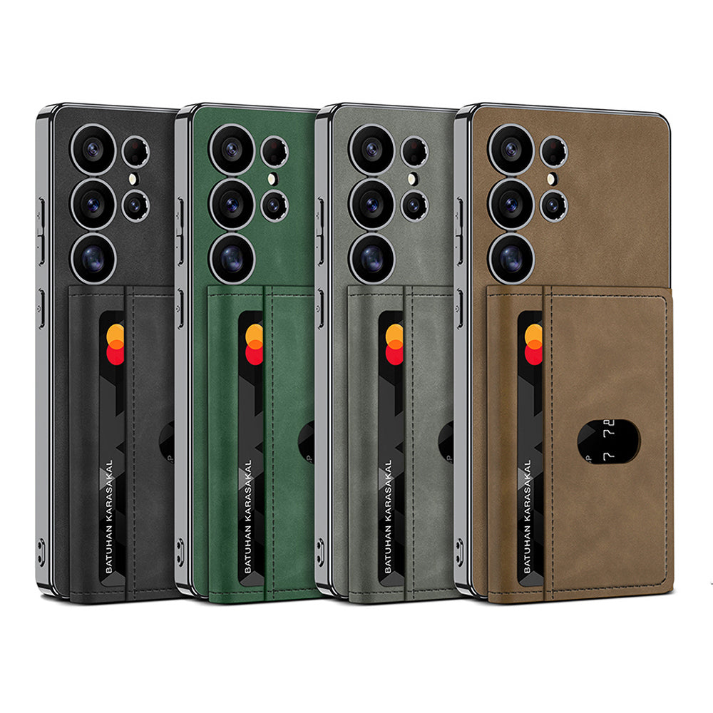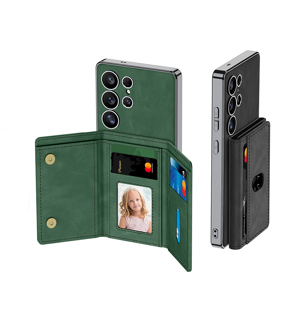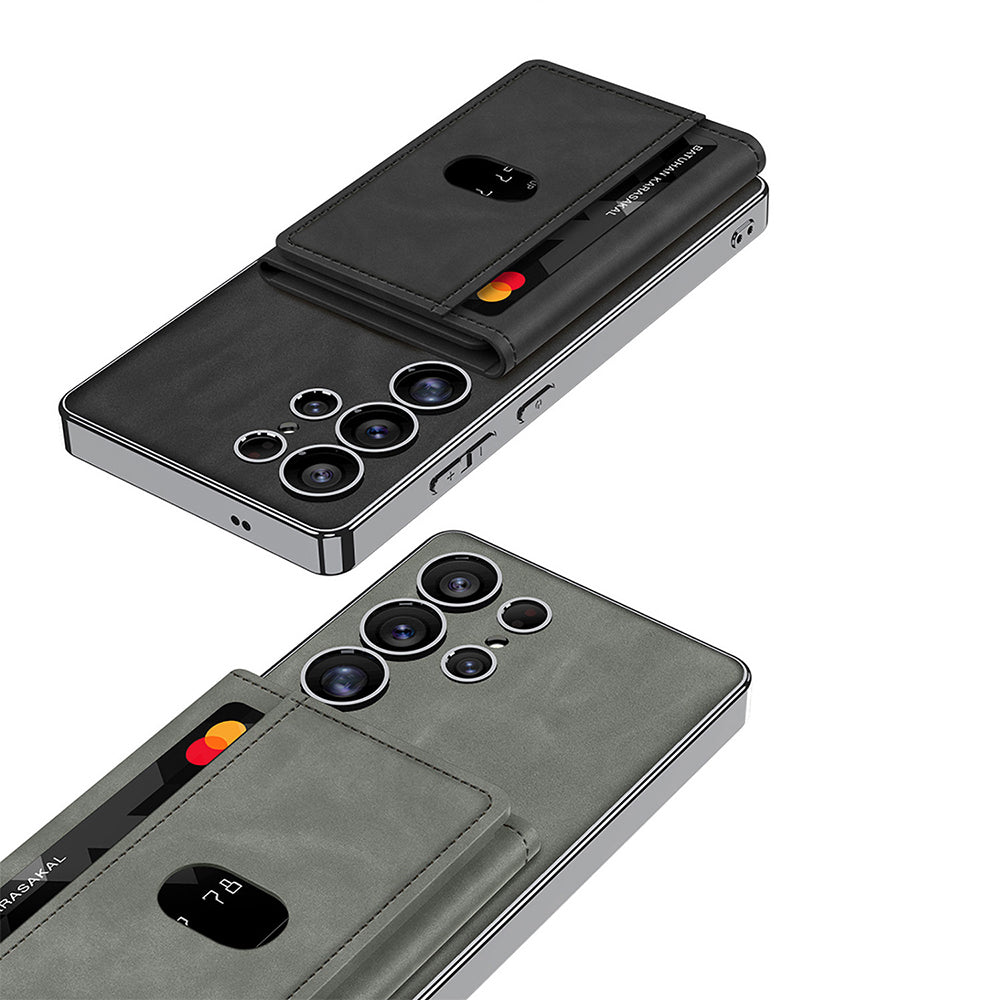 Galaxy S25 Ultra Case with M-safe Charging Function, Faux Leather Design, Zore Kipta Detachable Card Holder, Black