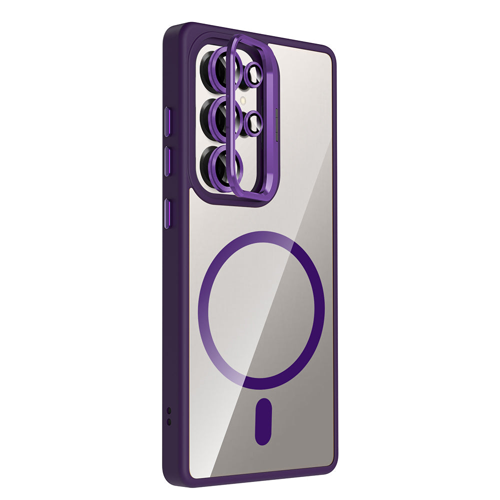 Galaxy S25 Ultra Case with Stand and Camera Lens Gift, M-Safe Charging Feature, Zore Etro Cover, Deep Purple