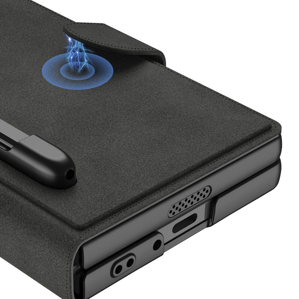 Galaxy Z Fold 6 Case Camera Protection Velvet Design Zore Kıpta Pen Compartment Fest Cover Black