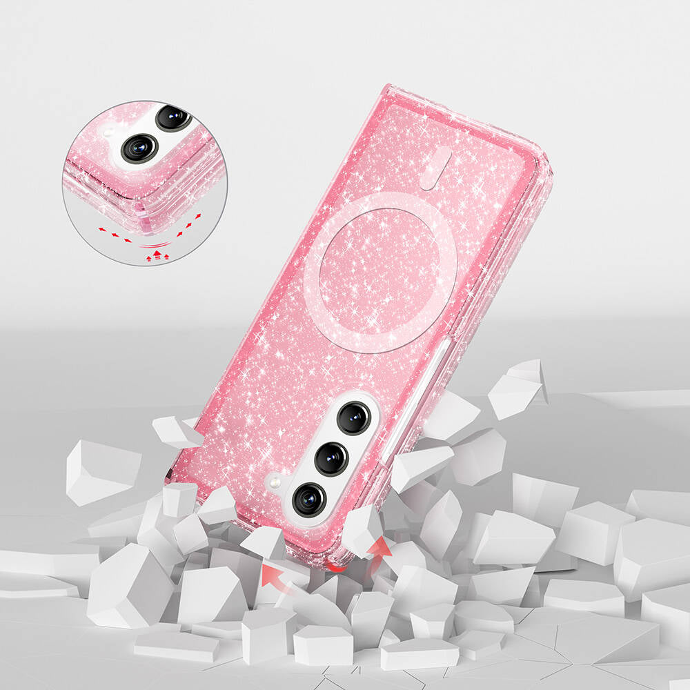 Galaxy Z Fold 6 Case M-safe Charging Feature Shining Glitter Transparent Colorful Zore Allstar Cover Pink
