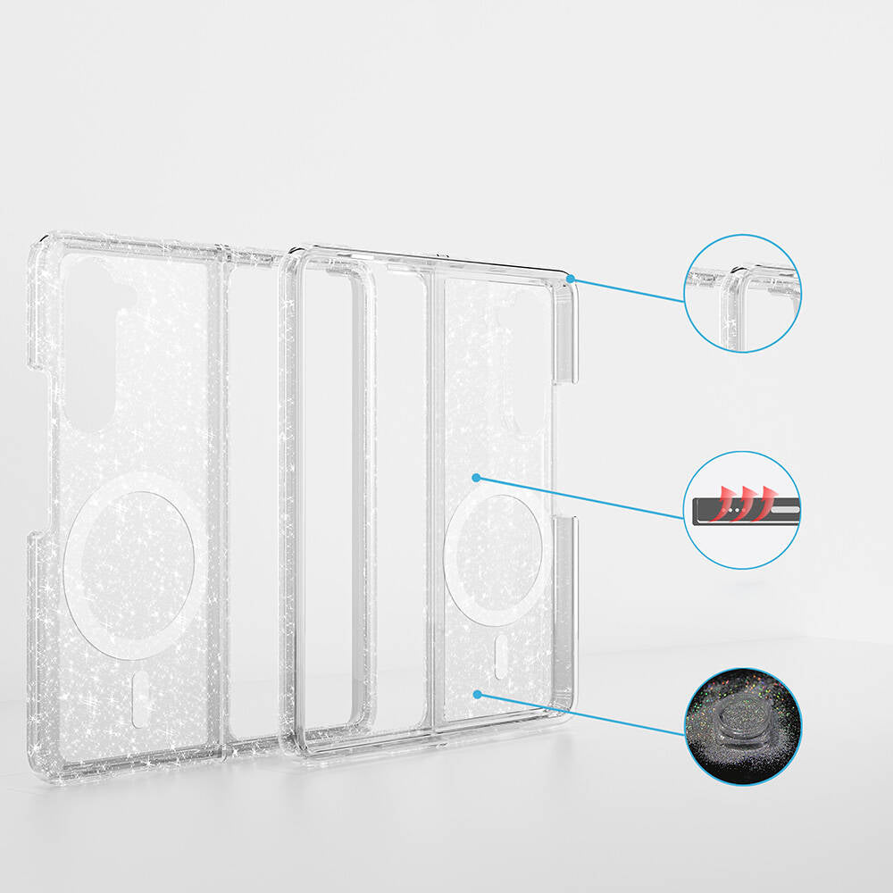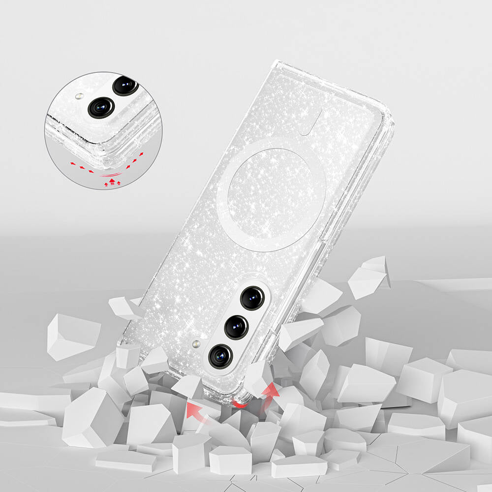 Galaxy Z Fold 6 Case Magsafe Charging Feature Shining Glitter Transparent Colorful Zore Allstar Cover