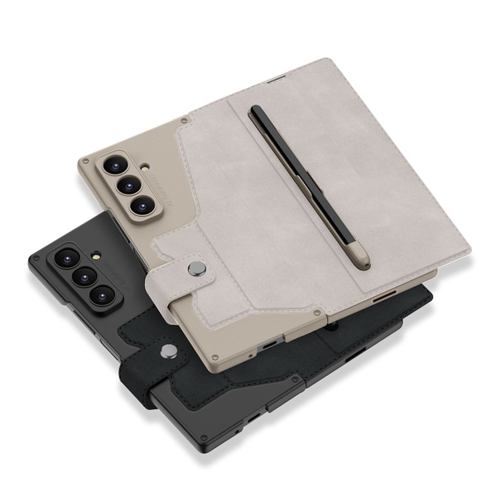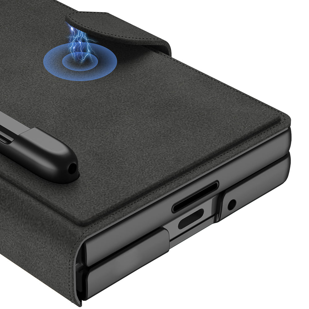 Galaxy Z Fold 7 Case Camera Protection Velvet Design Zore Kıpta Pen Compartment Fest Cover Black