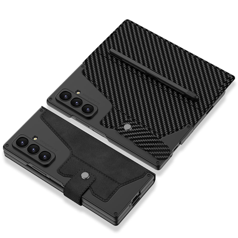 Galaxy Z Fold 7 Case Camera Protection Carbon Design Zore Kipta Fest Cover with Pen Compartment