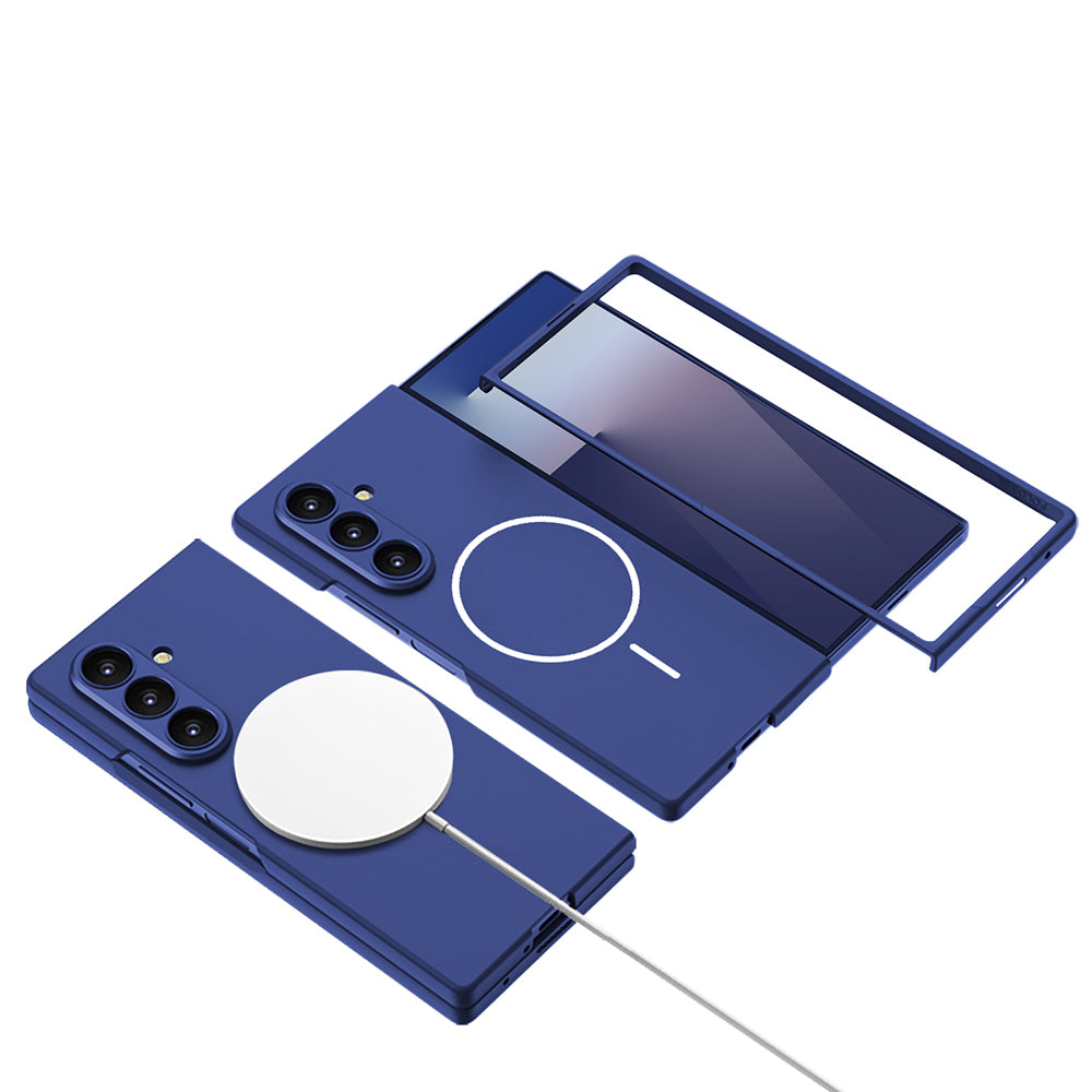 Galaxy Z Fold 7 Case Wireless Charging Feature Zore Kıpta M-safe Cover Navy Blue