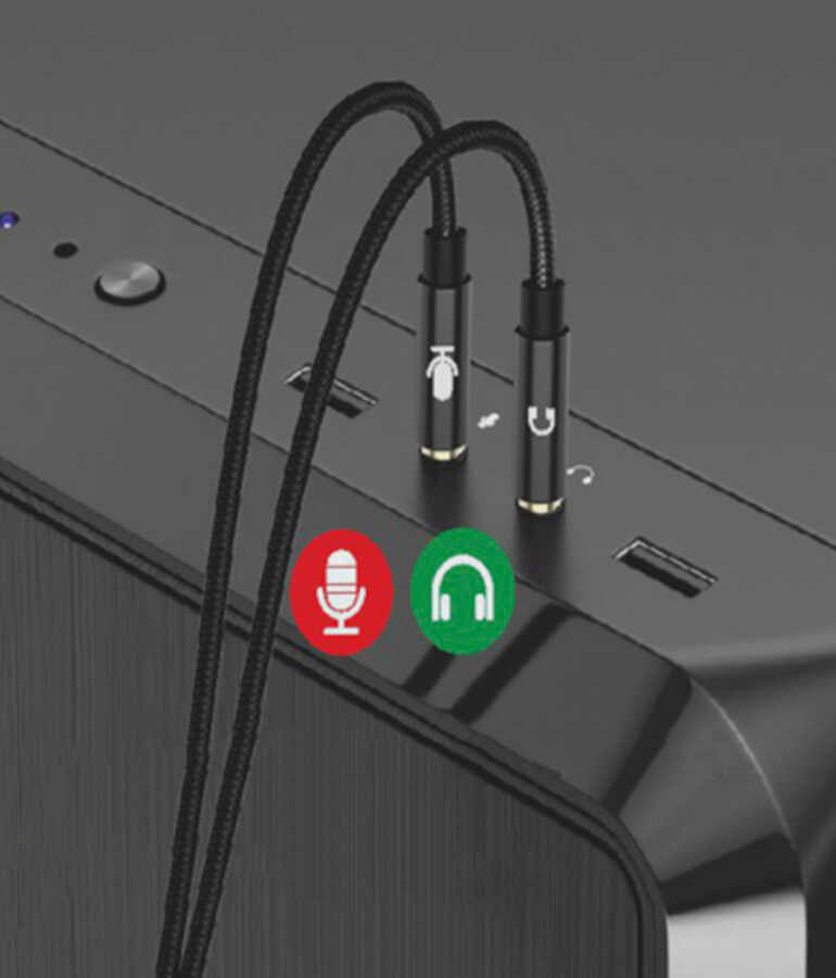 Converts 1 x 3.5mm input to 2 x (Audio and Microphone) 3.5mm outputs