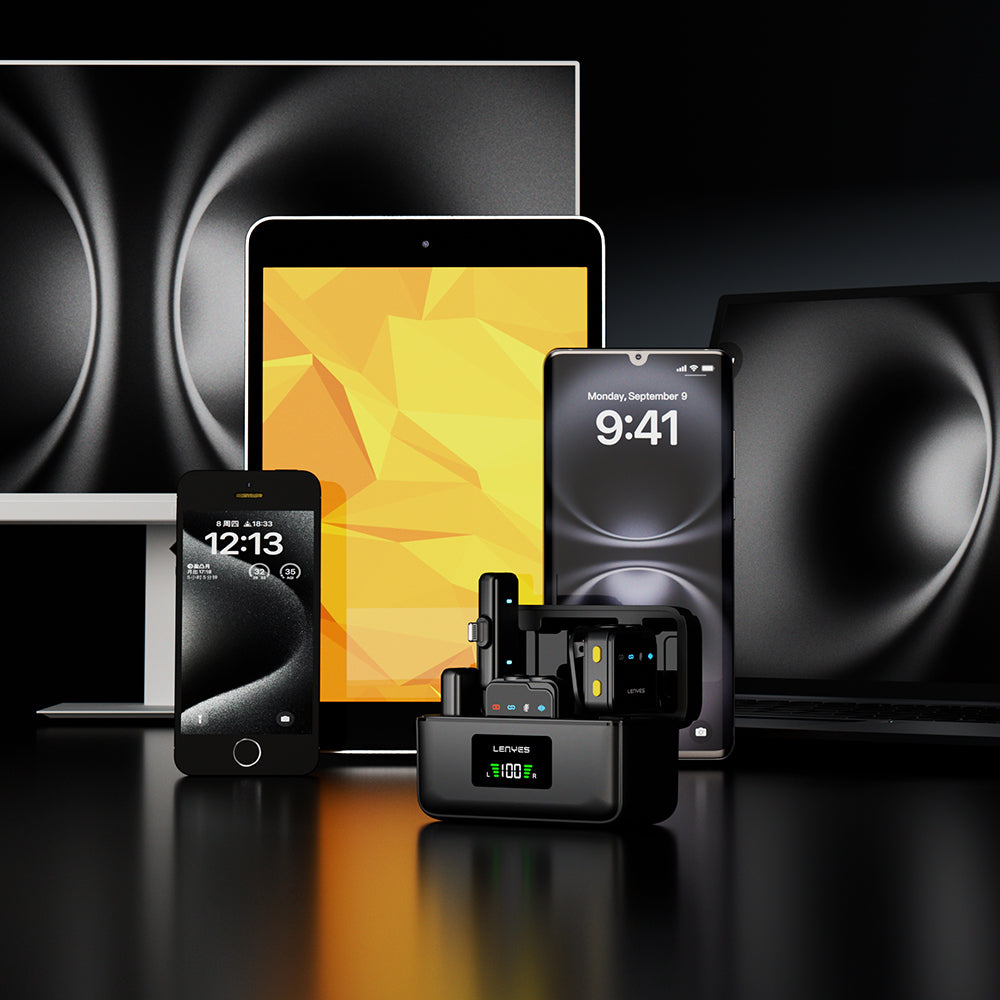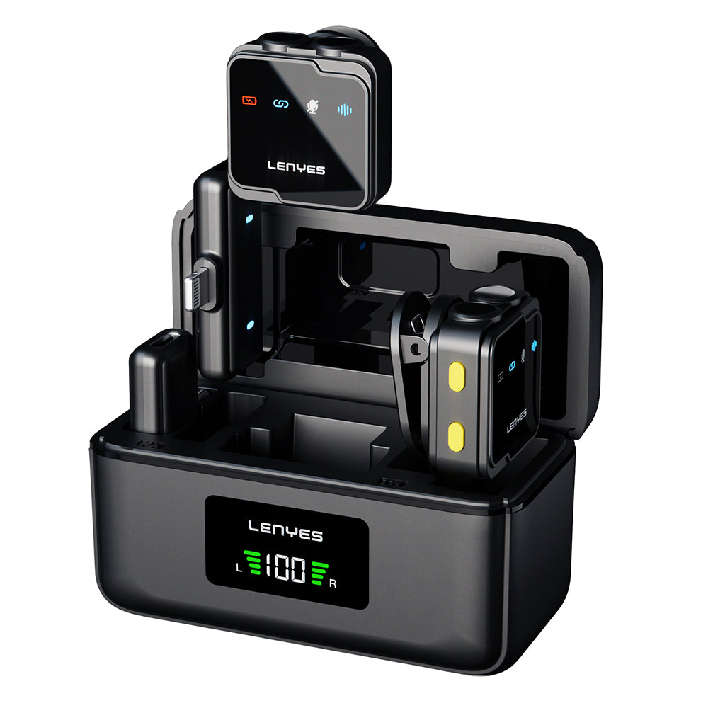 The Lenyes LM205 offers a brand new audio solution for content creators, educators, and broadcasters with its dual-receiver structure supporting both Type-C and Lightning connections. Ideal for users who want to switch between Android and iOS devices, this system is easily controlled from the charging case and, thanks to its high-sensitivity microphones, delivers clear and powerful audio in any environment.