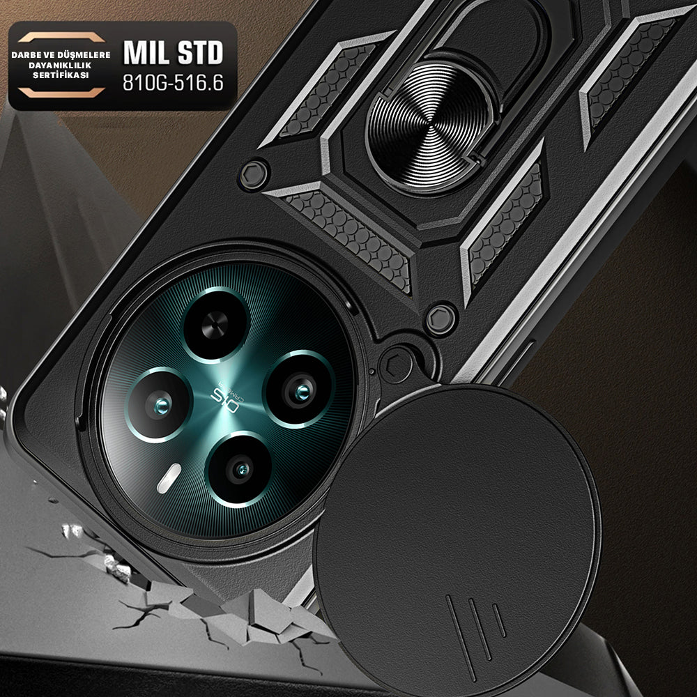 Realme 12 Case Magnetic Stand Camera Protection Zore Sliding Vega Cover Black