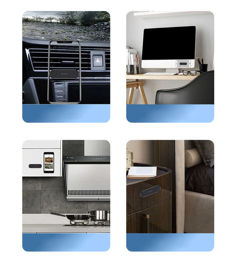 You can use it by sticking it on flat surfaces thanks to 3M adhesive.