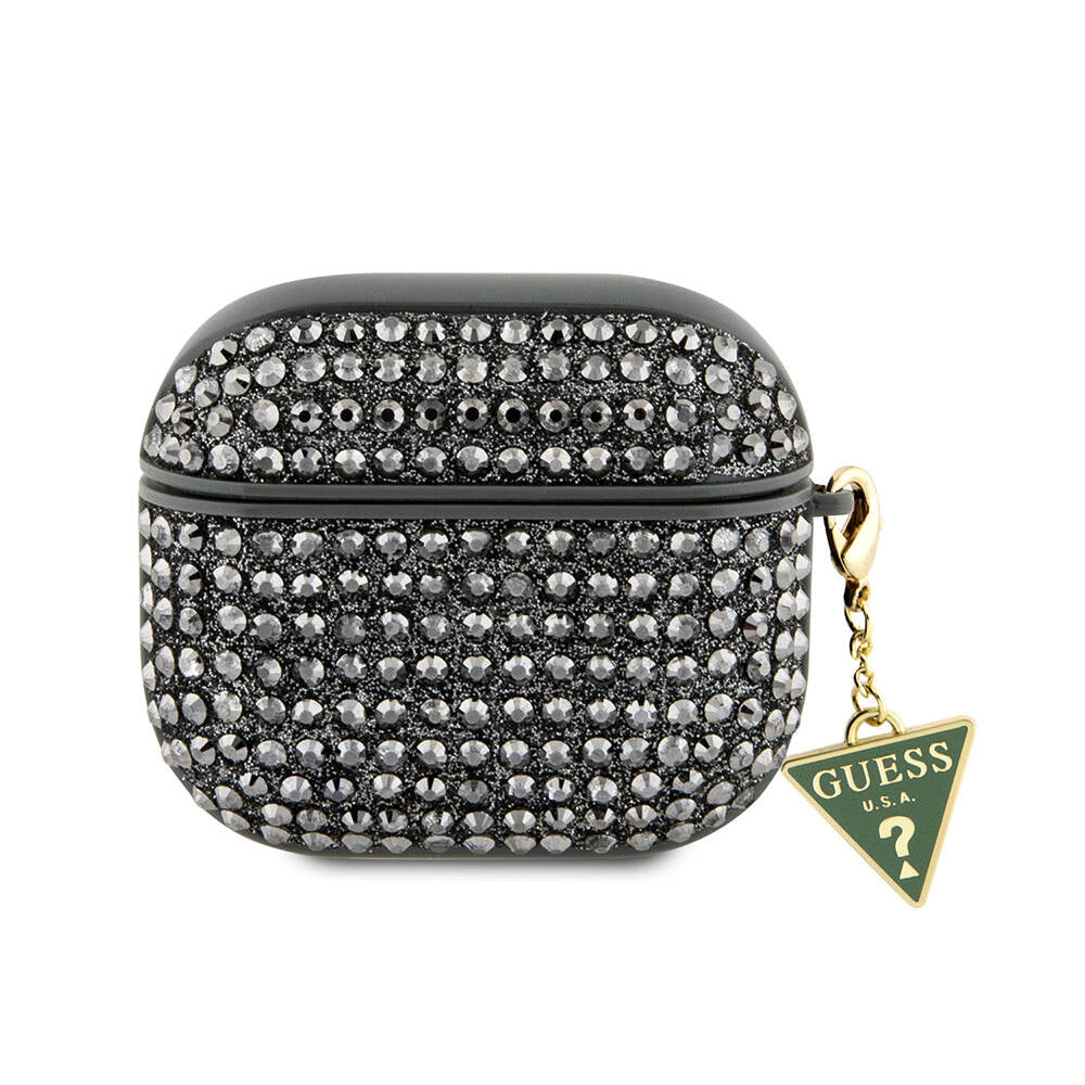 Airpods 3. Nesil Kılıf Guess Orjinal Lisanslı Parıltılı Taş Kaplamalı Üçgen Logo Süs Zincirli Kapak
