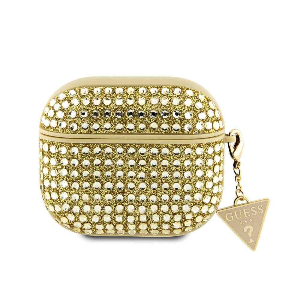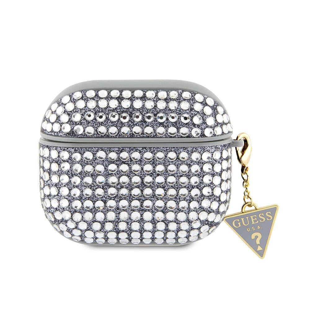 Airpods 3. Nesil Kılıf Guess Orjinal Lisanslı Parıltılı Taş Kaplamalı Üçgen Logo Süs Zincirli Kapak