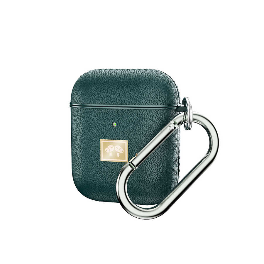 Apple Airpods Kılıf Deri Görünümlü Askı Aparatlı Wlons Kılıf Koyu Yeşil